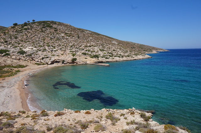 Bár a kopár hegyeken toronyiránt is leküzdhető (és rövidebb) az út Marathontas és a további, kis szurdokos hegymászással Thofas felé, ám én nem ezt választom, hanem vissza majdnem Avlakiig és onnan keletre. Azonban az már kérdés, hogy ez megéri-e. A két strand álomszép -ám totálisan ápolatlanok. Rengeteg a szemét. Ahelyett, hogy télen egy hét alatt kitisztítanák és indítanának egy kishajót a sziget körül jó pénzért...